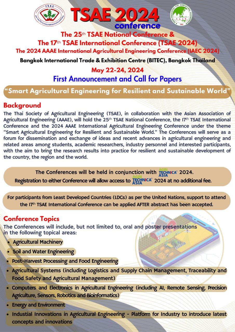 AgEngThailand AgriSpark conference Future Food Leader Summit Hackathon JOURNAL TSAE TSAE2024 TSAE2025Conference TSAEJOURNAL นวัตกรรมเกษตร ประชุมวิชาการ วารสารวิชาการ วารสารสมาคมวิศวกรรมเกษตรแห่งประเทศไทย วิศวกรรมเกษตร สมาคมวิศวกรรมเกษตร สมาคมวิศวกรรมเกษตรแห่งประเทศไทย สวกท โครงงานวิศวกรรมเกษตรแห่งชาติ