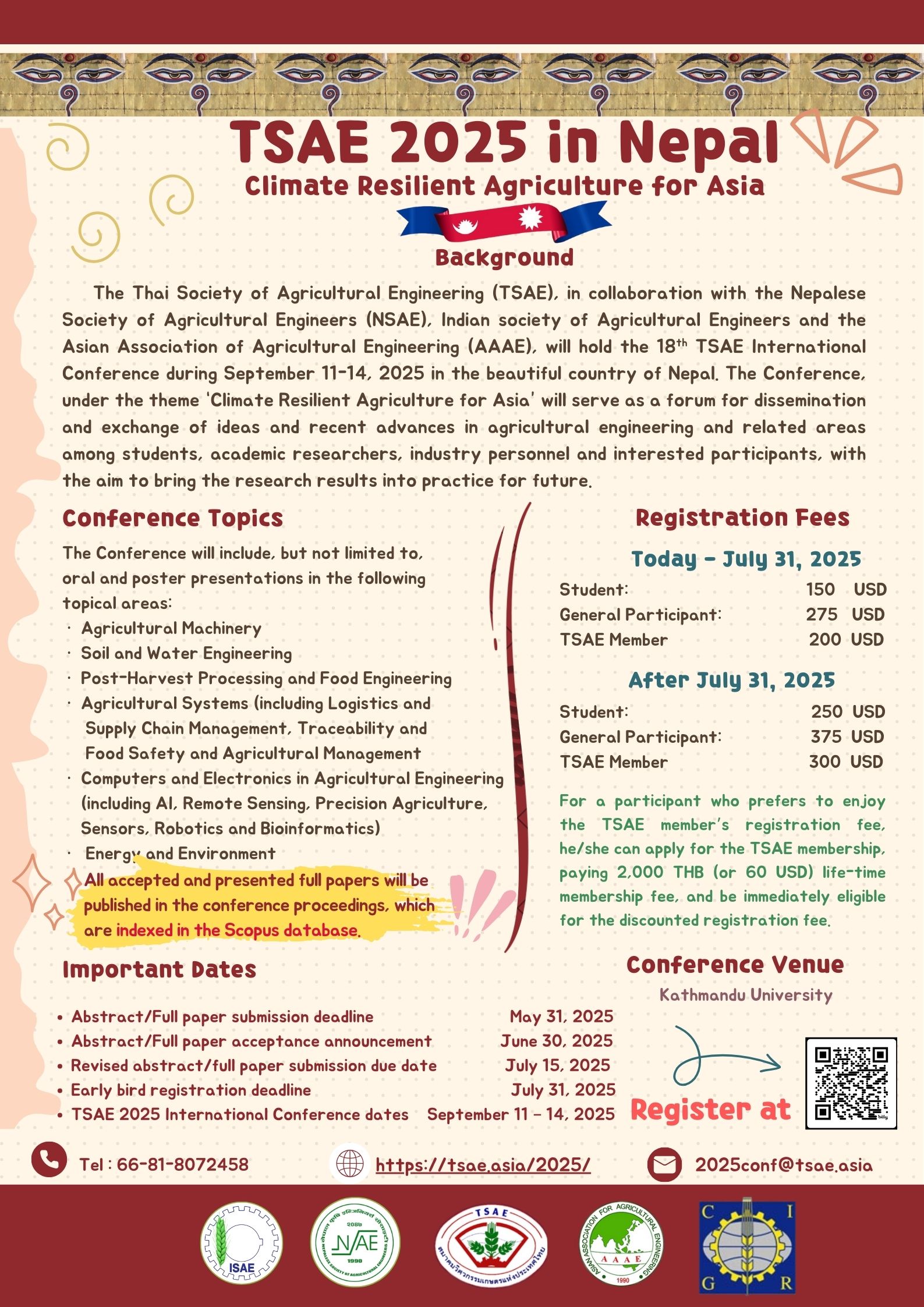 #ประชุมวิชาการ #สวกท #AgEngThailand #สมาคมวิศวกรรมเกษตรแห่งประเทศไทย #วิศวกรรมเกษตร #นวัตกรรมเกษตร #TSAE2025Conference