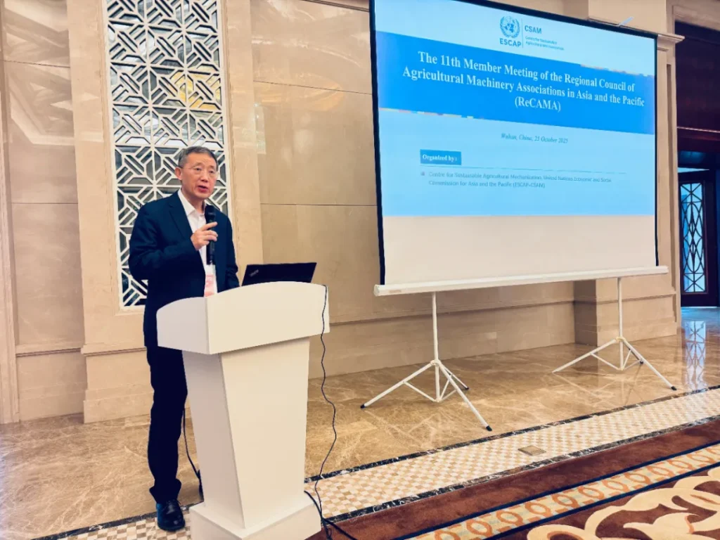 The 11th Member Meeting of the Regional Council of Agricultural Machinery Associations in Asia and the Pacific (ReCAMA) was held on 25 October 2025 in Wuhan, China, convened by the Centre for Sustainable Agricultural Mechanization (CSAM) of the United Nations Economic and Social Commission for Asia and the Pacific (ESCAP). The meeting brought together 39 participants from 12 ReCAMA member associations across the Asia-Pacific region to exchange insights on cutting-edge technologies in their respective countries, review the annual work report, and discuss the work plan in 2026.