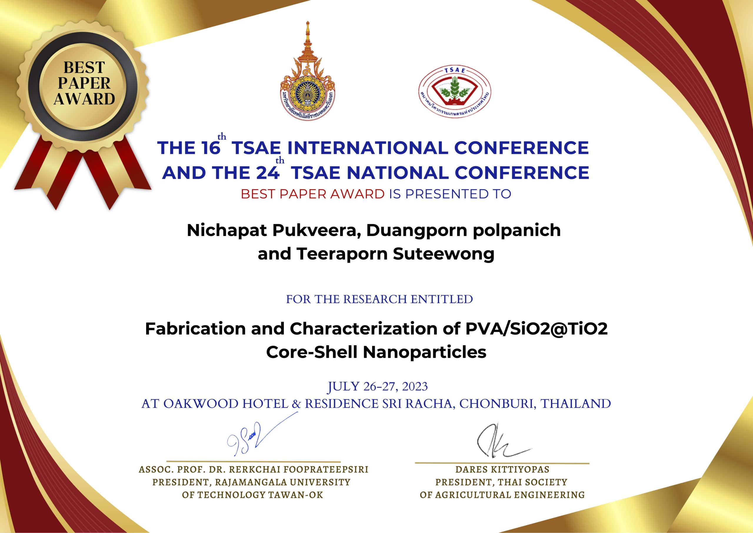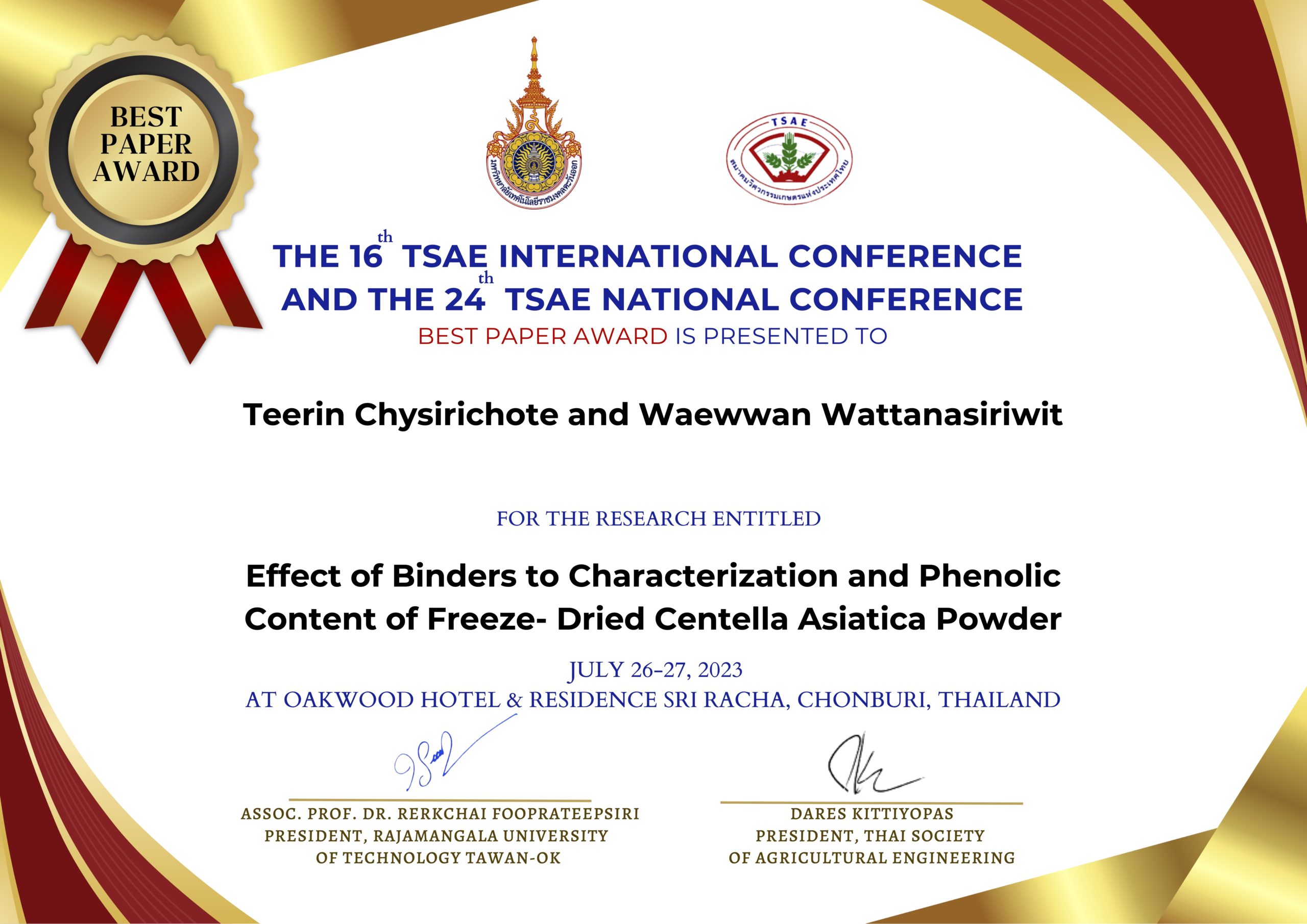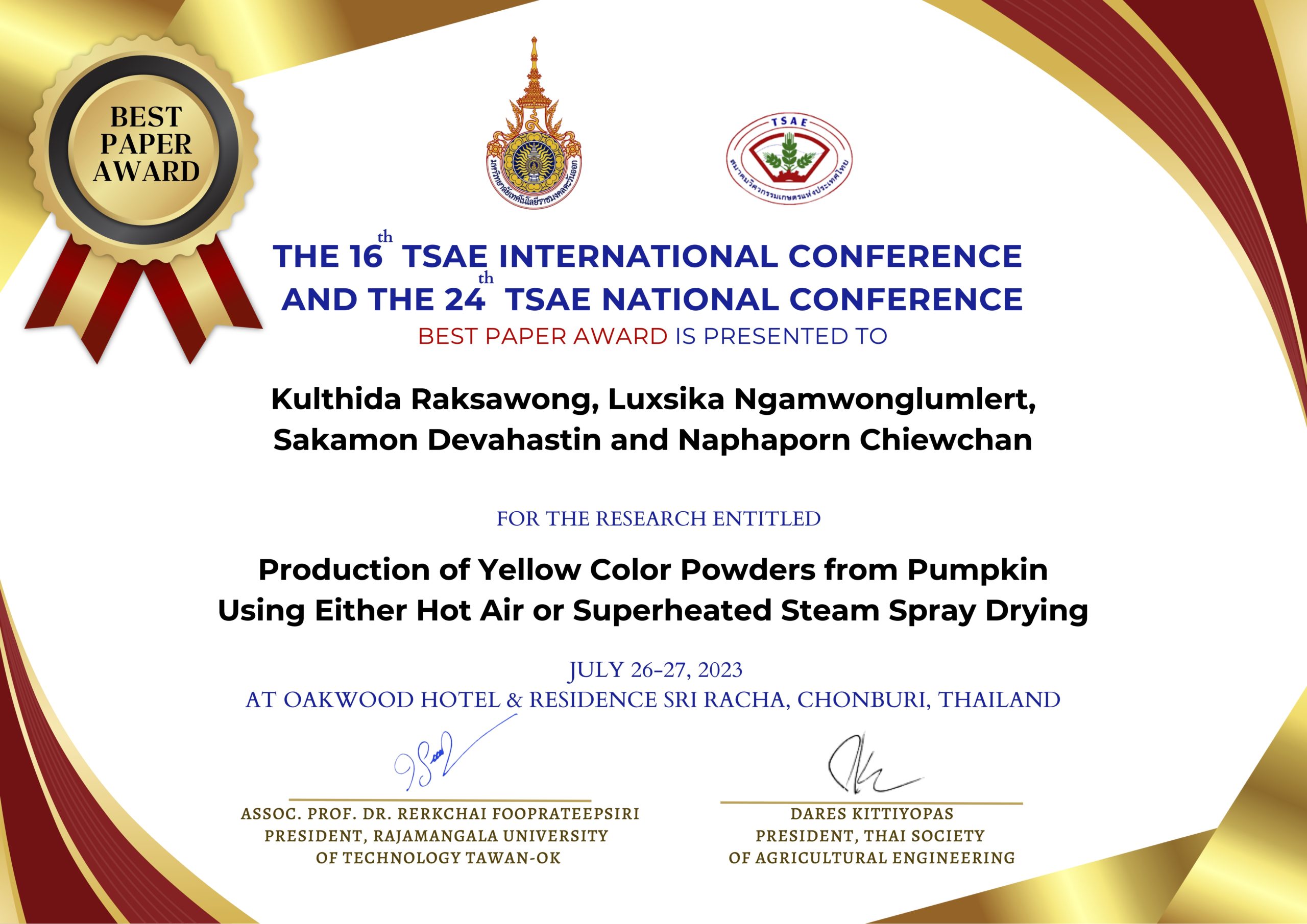 บทคัดย่อจากบทความวิชาการในงานประชุมวิชาการสมาคมวิศวกรรมเกษตรแห่งประเทศไทย ดาวน์โหลด ที่นี่
