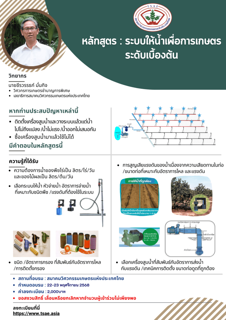 🌱 สมาคมวิศวกรรมเกษตรแห่งประเทศไทย ขอเชิญเกษตรกร นั